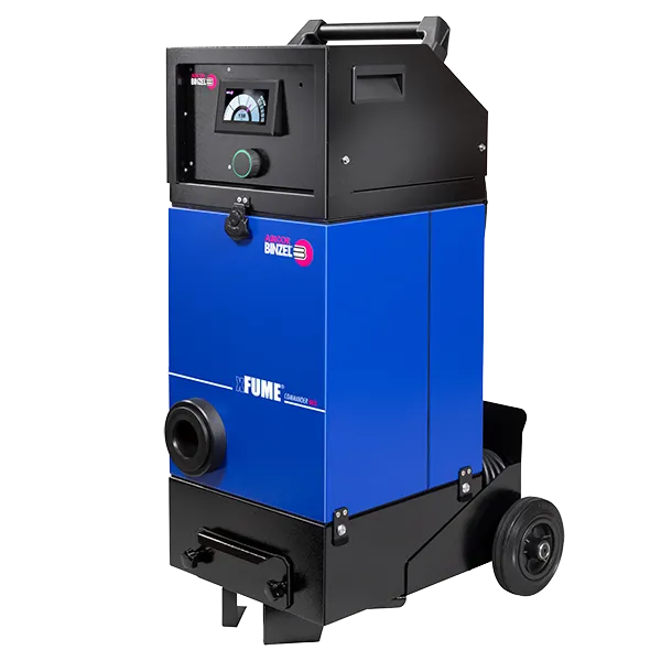 We recommend the xFUME® ADVANCED fume extraction system from ABICOR BINZEL for fume extraction during manual welding with an extraction torch. This system is equipped with 4 rollers and is easy to move. The xFUME® COMMANDER extraction system is also suitable for up to two manual extraction torches. Thanks to its modular design, this system can also be adapted for use with a welding cobot or welding robot.