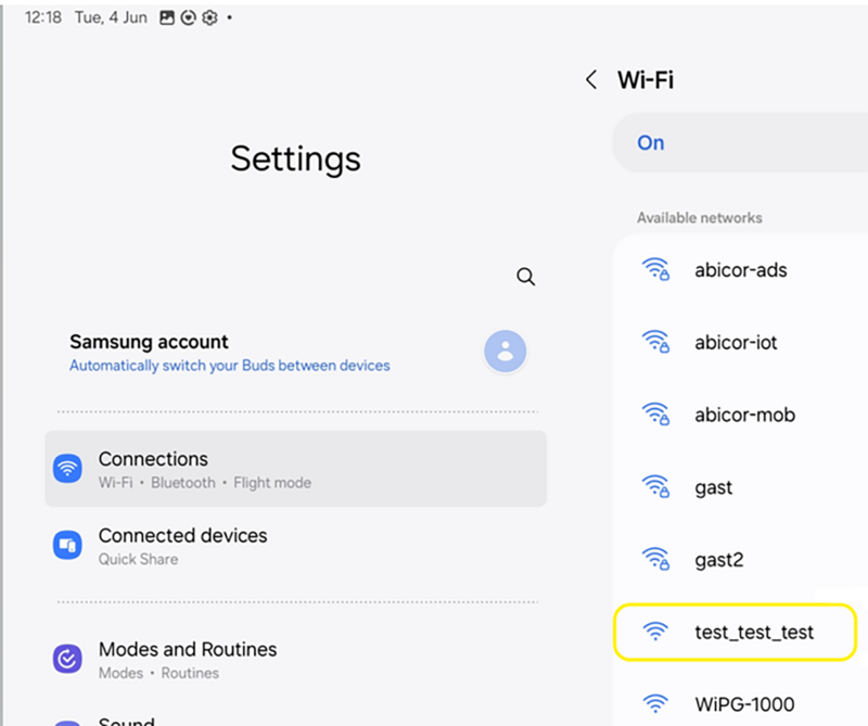 - Die zugewiesene SSID wählen (im Beispiel test_test_test).