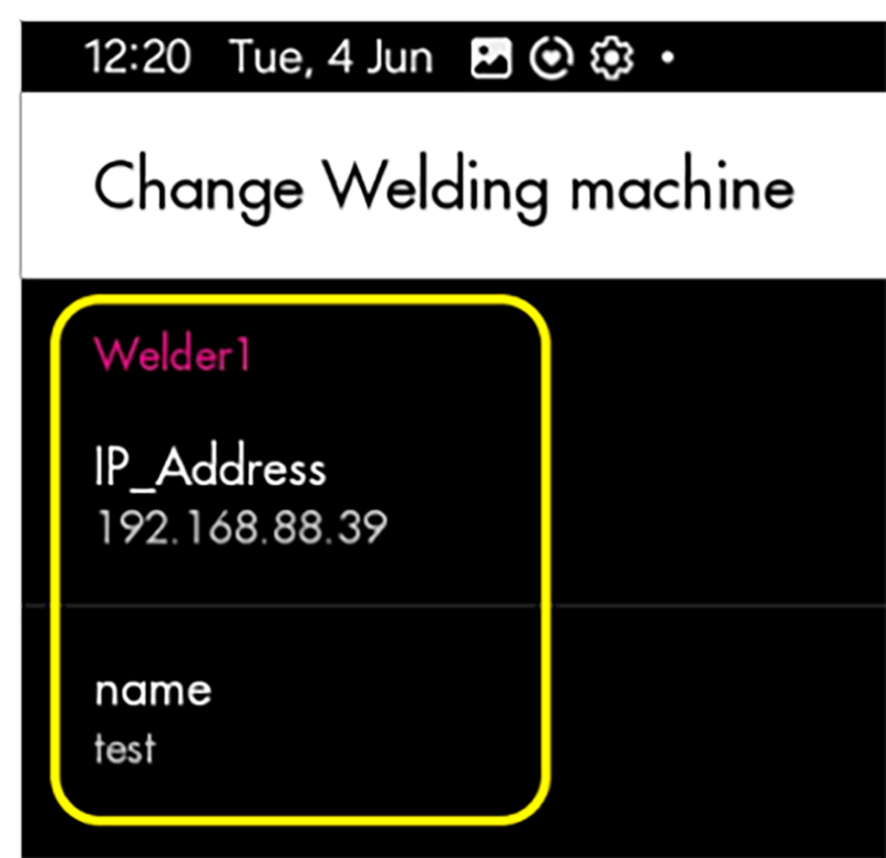 - IP-Adresse der Schweißstromquelle am Tablet eingeben.