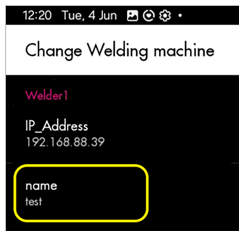 - Beliebigen Namen für die Schweißstromquelle am Tablet eingeben.