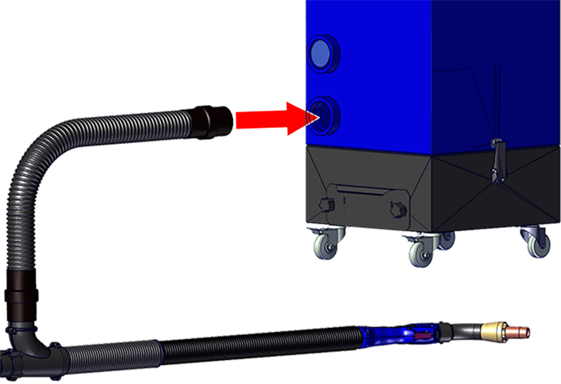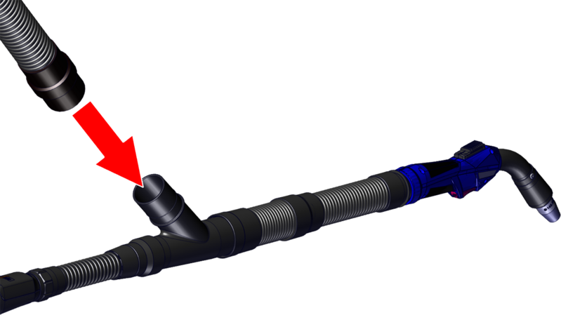 - Connect one end of the extraction hose to the connection on the cable assembly of the fume collection device (for example fume extraction torch).