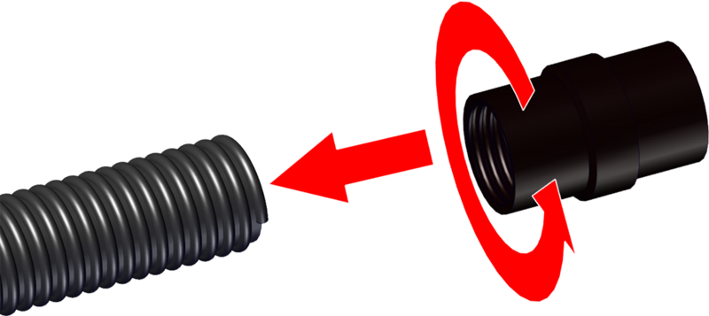 - Connect the other end of the extraction hose to the air extraction fitting of the device.