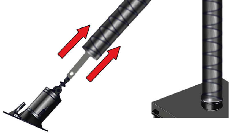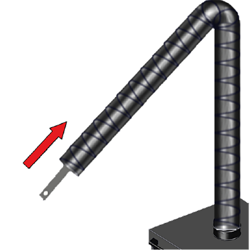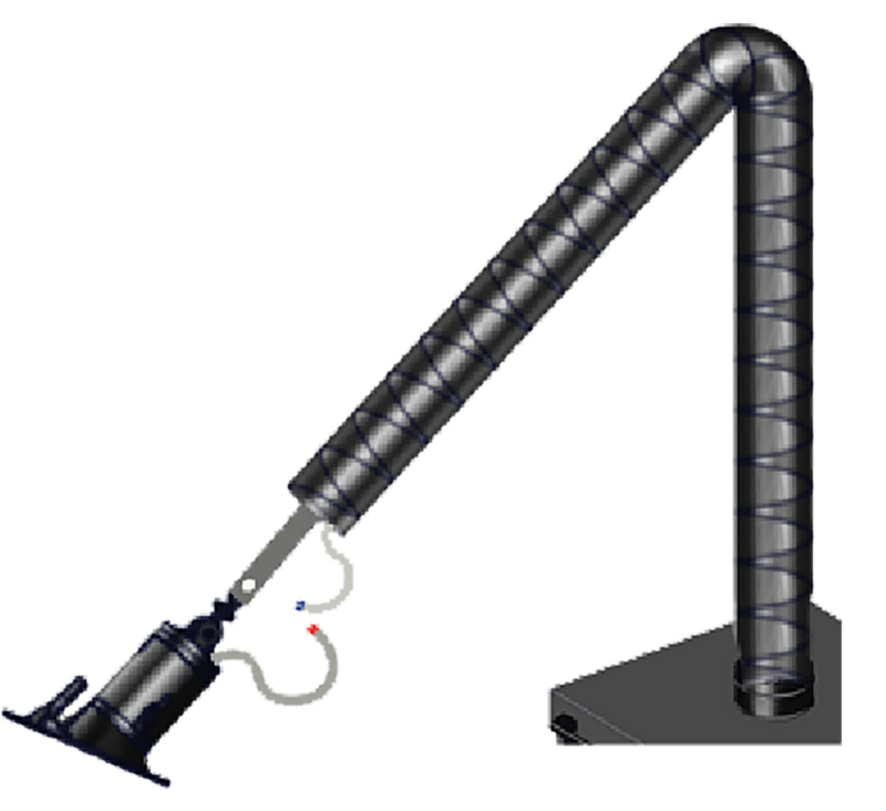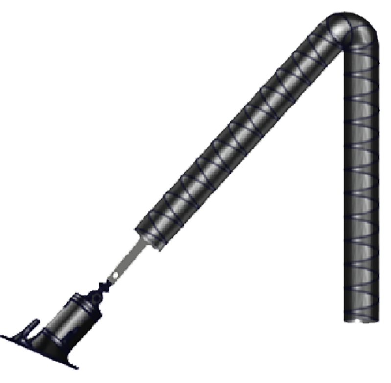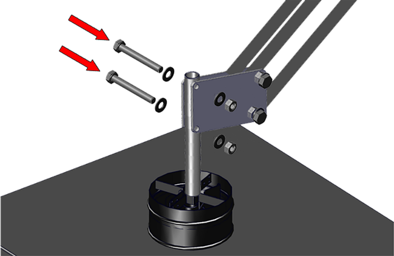 - 将排烟臂连杆用两个 M8 六角螺栓、垫圈和六角螺母安装在固定管上。
