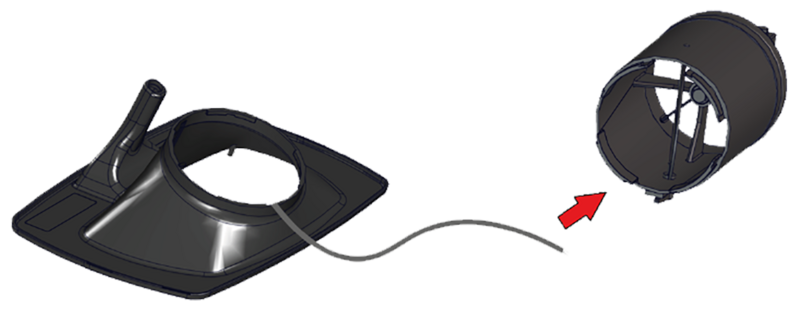 - 将排烟软管拉到异型管上方,直至越过安装环。